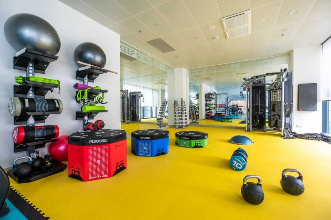V pražské pobočce je více než 2 000 členů týmu z celého světa. Proto jsme navrhli silnou kardio zónu a velmi atraktivní prostor s posilovacími stroji i rozsáhlou funkční zónu. Dodali jsme špičkové stroje MATRIX. Kardio zóna obsahuje prémiové běhací pásy T7xe, schodiště, eliptické trenažéry, cyklotrenažéry a veslovací trenažéry. Dotykové displeje nabízejí nejvyšší možný komfort pro cvičence ze všech koutů světa. Posilovací stroje řady MATRIX AURA nabízejí výbornou biomechaniku pohybu a rámy v černém matném provedení vytváří luxusní atmosféru. Funkční zóna s podlahou PAVIGYM a kompletním vybavením značky ESCAPE nabízí neomezený trénink výkonnostním i kondičním cvičencům. Celé sportoviště doplňuje multifunkční sál s velkou TRX konstrukcí.