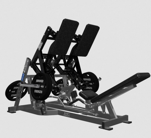 Super Squat Press přináší legendární biomechaniku stroje Cybex Squat Press do nabídky Hammer Strength – a přidává ještě větší výkon. Díky kloubovým nášlapným platformám a správně nastavené silové křivce poskytuje tento stroj pocitově „správný“ tlakový pohyb – plynulý tam, kde má být, a náročný tam, kde je to potřeba. Jednostranná ramena navíc umožňují trénovat každou nohu samostatně a podporují vyváženou, sportovně použitelnou sílu. Rozměry (D × Š × V): 224 × 175 × 157 cm Hmotnost produktu: 258 kg